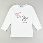 חולצת שרוול 3/4 עם פפיונים - שמנת