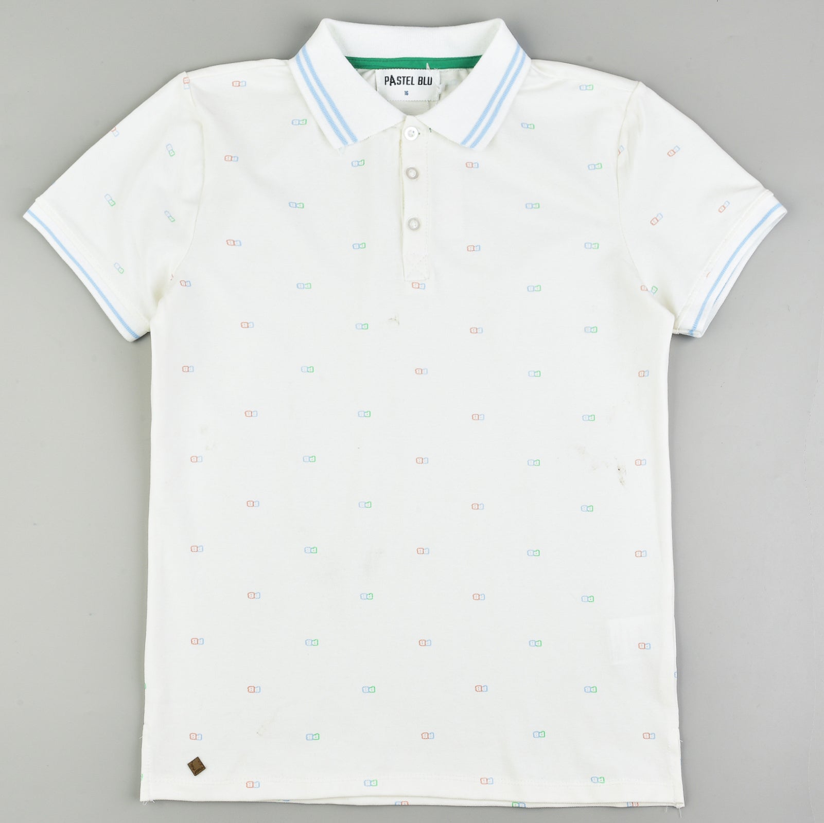 חולצת פולו לבנים עם צווארון ושלושה כפתורים, ללבישה קלה ונוחה.