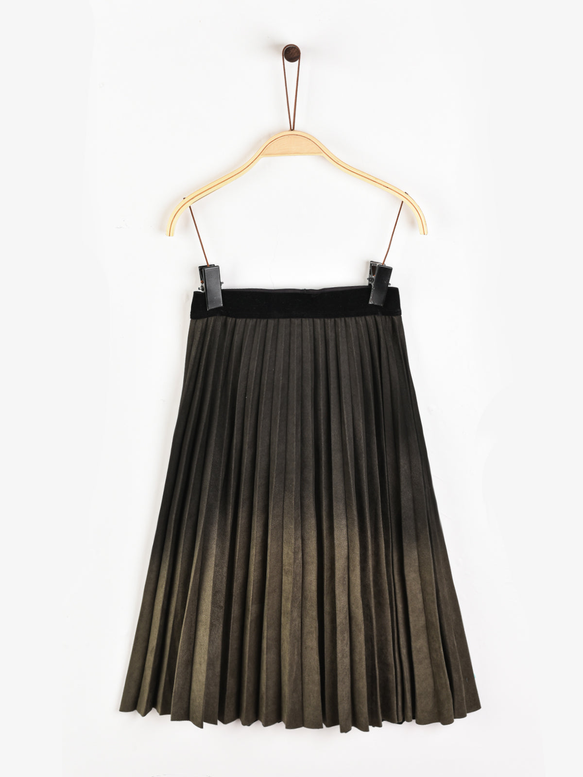 חצאית פליסה במראה זמש - זית