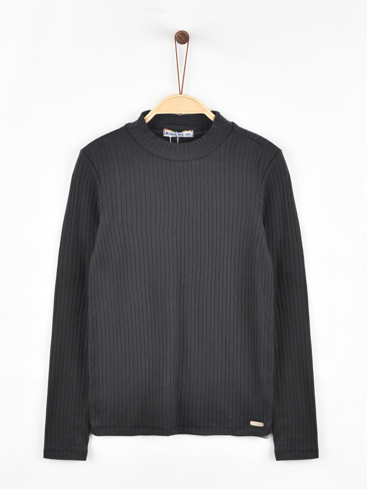 חולצה עם שרוולים ארוכים מבד ריב נעים וצווארון חצי גולף.