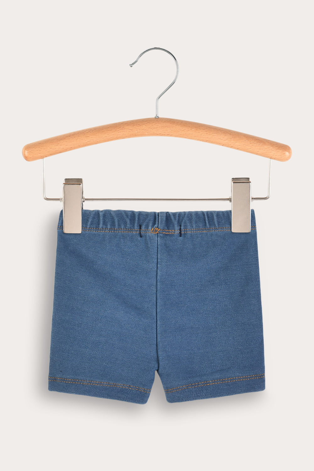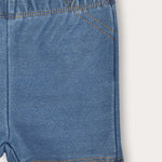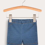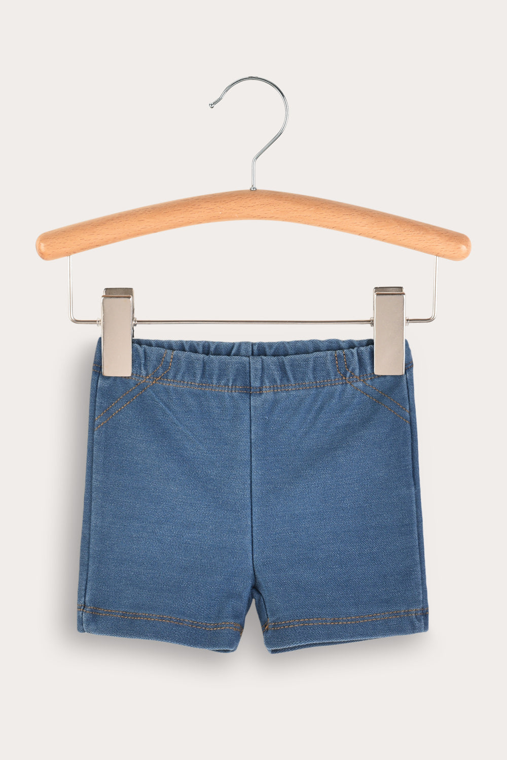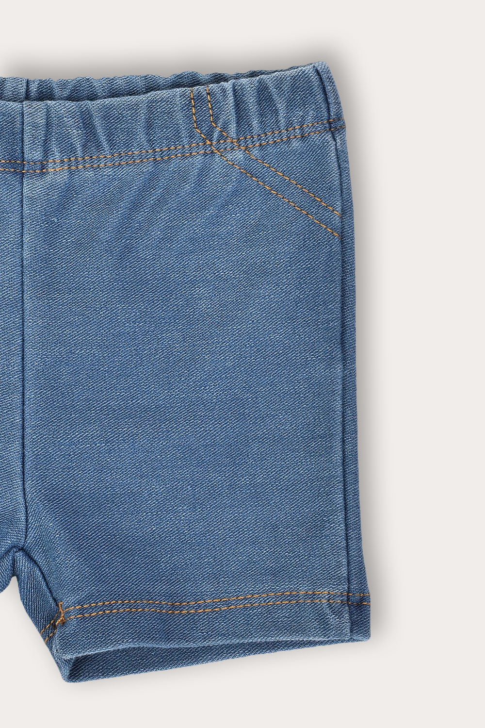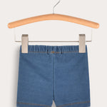 טייץ ג'ינס קצר לתינוקות, בדגם יוניסקס המתאים לבנים ולבנות כאחד.