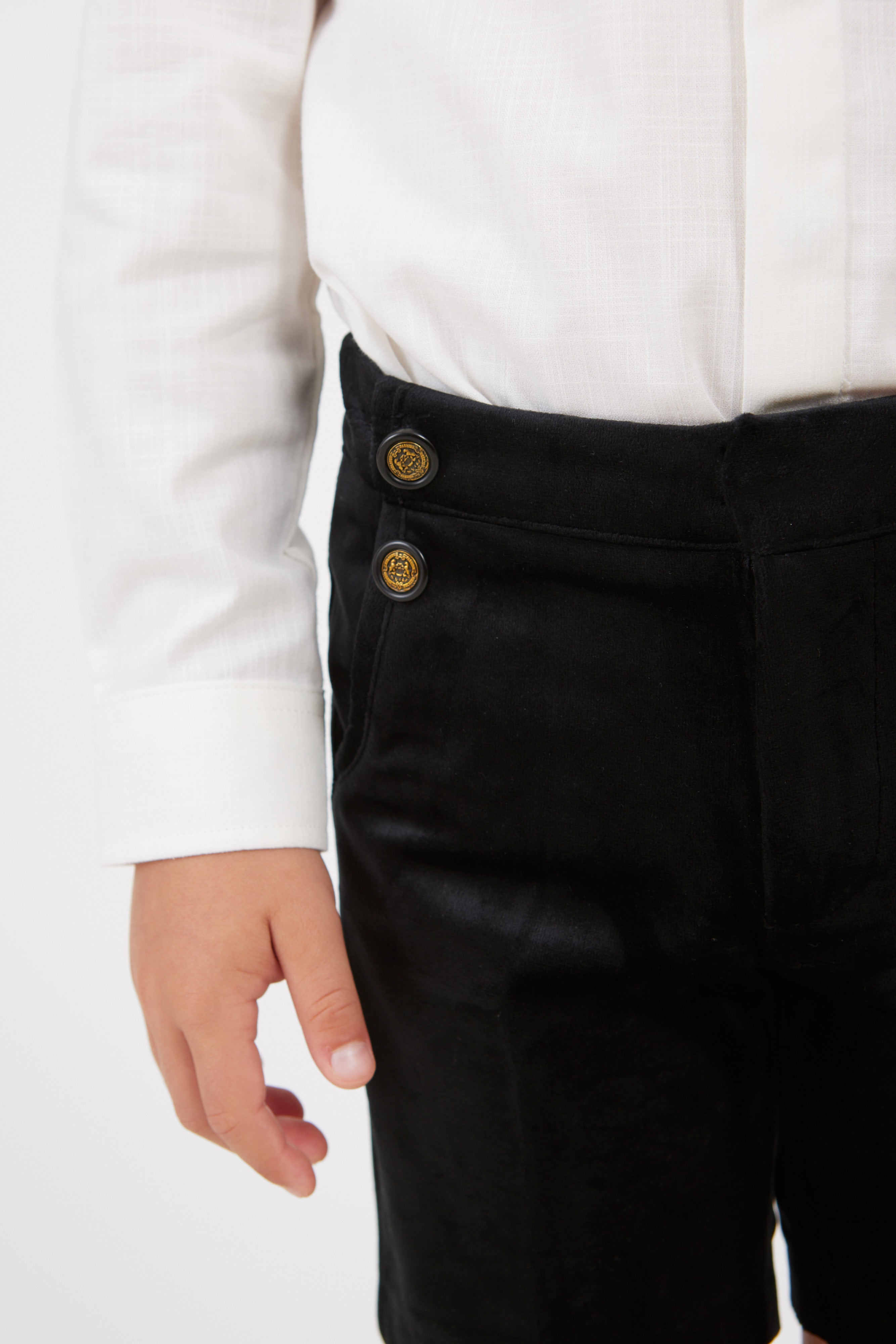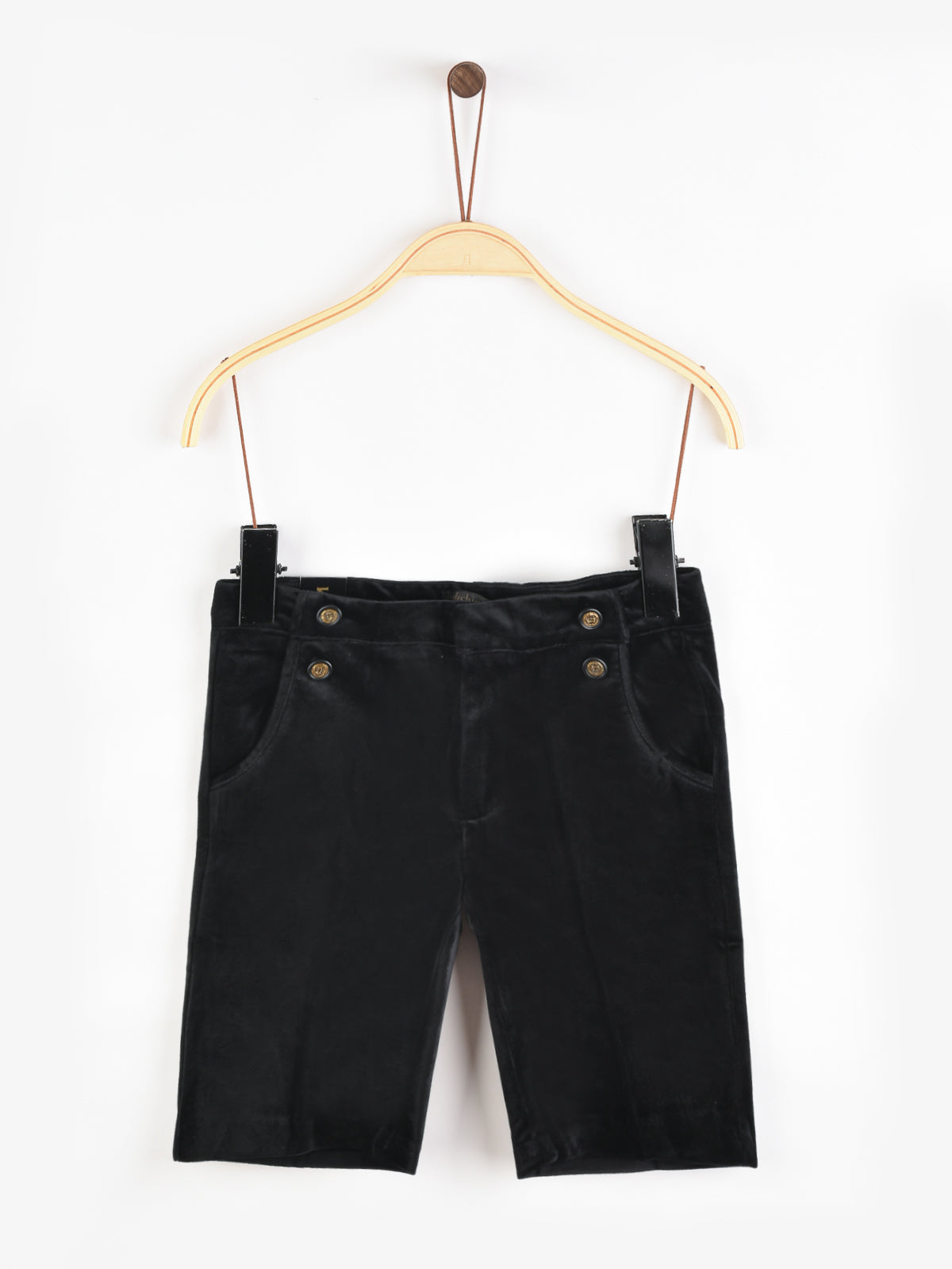 מכנסי קטיפה קצרים, עם כיסים וכפתורים.