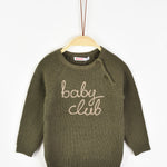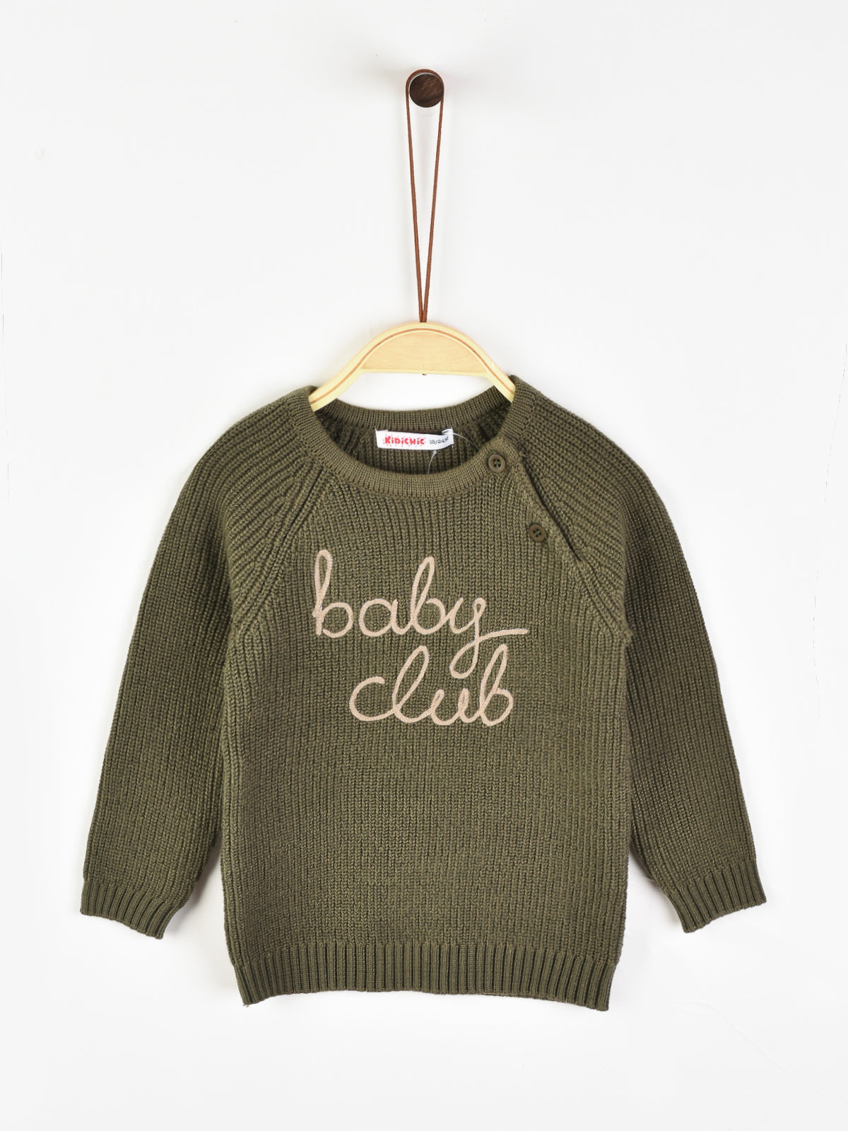 סוודר לתינוקות עם כיתוב וסגירת כפתורים.