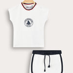 סט שני חלקים לתינוק, בעיצוב ספורטיבי עם הדפס קייצי.