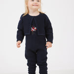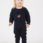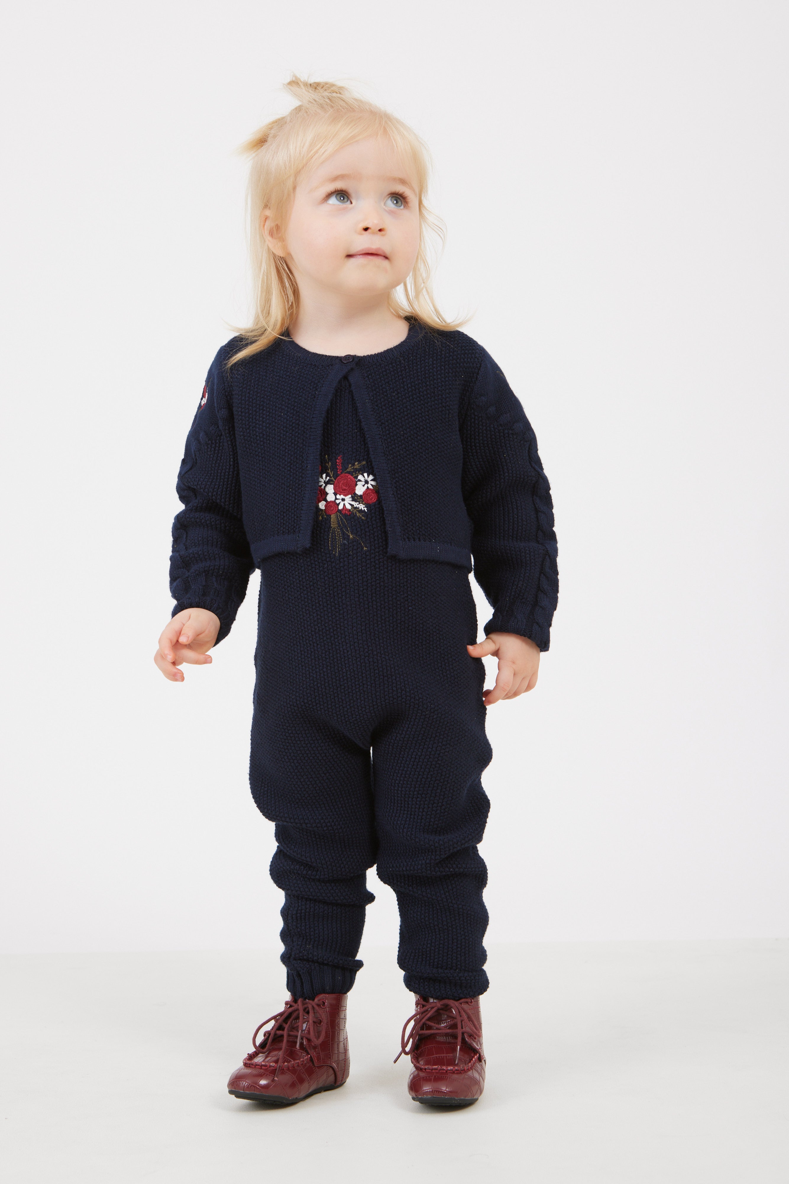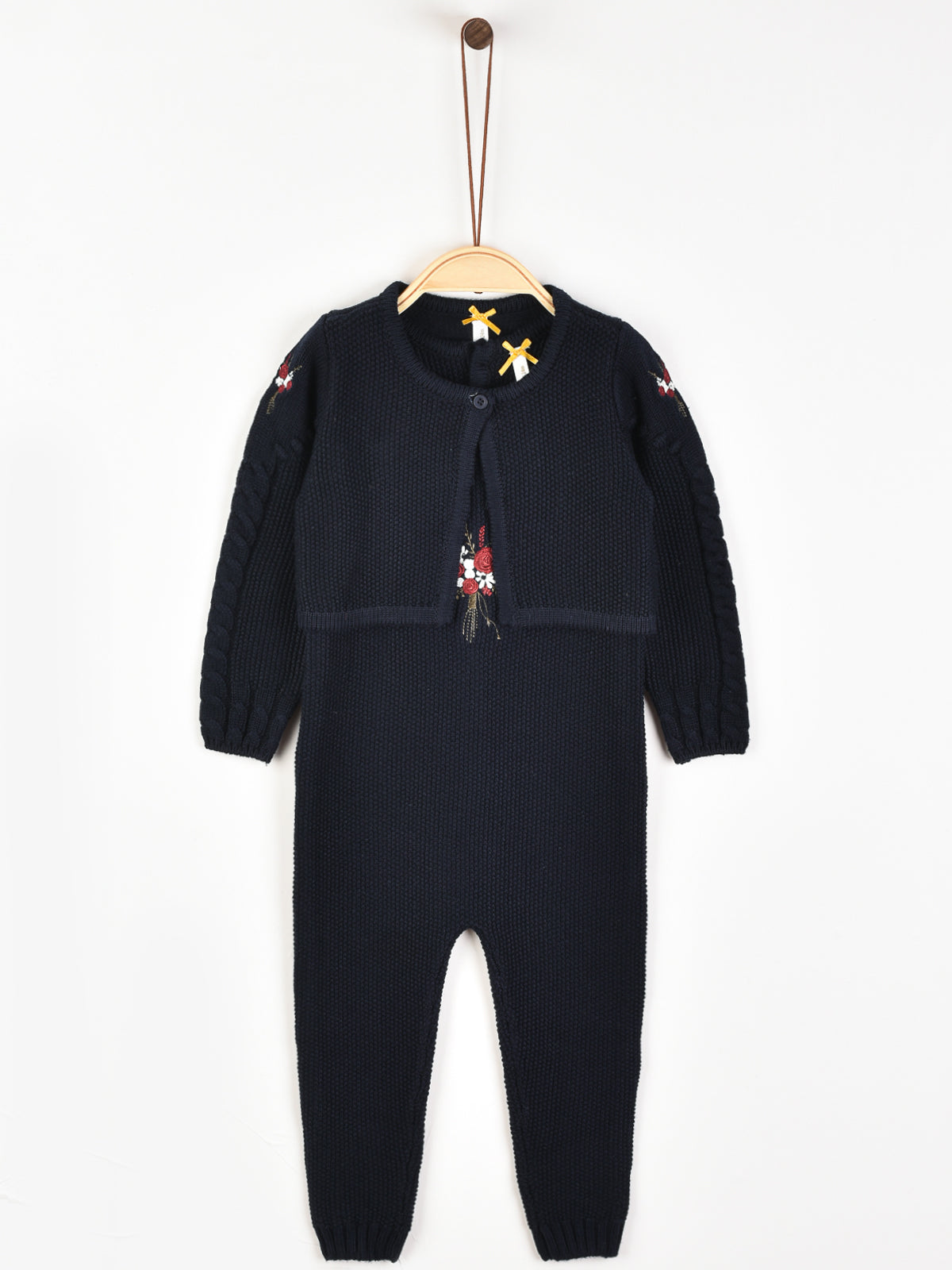 סט לתינוקת - אוברול וקרדיגן מבד סריג בשילוב רקמת פרחים עדינה.