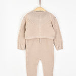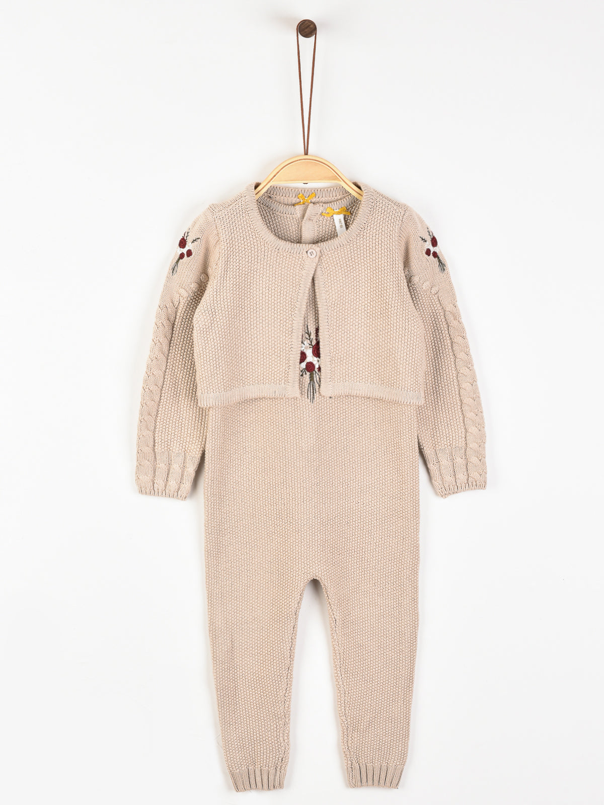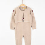 סט לתינוקת - אוברול וקרדיגן מבד סריג בשילוב רקמת פרחים עדינה.