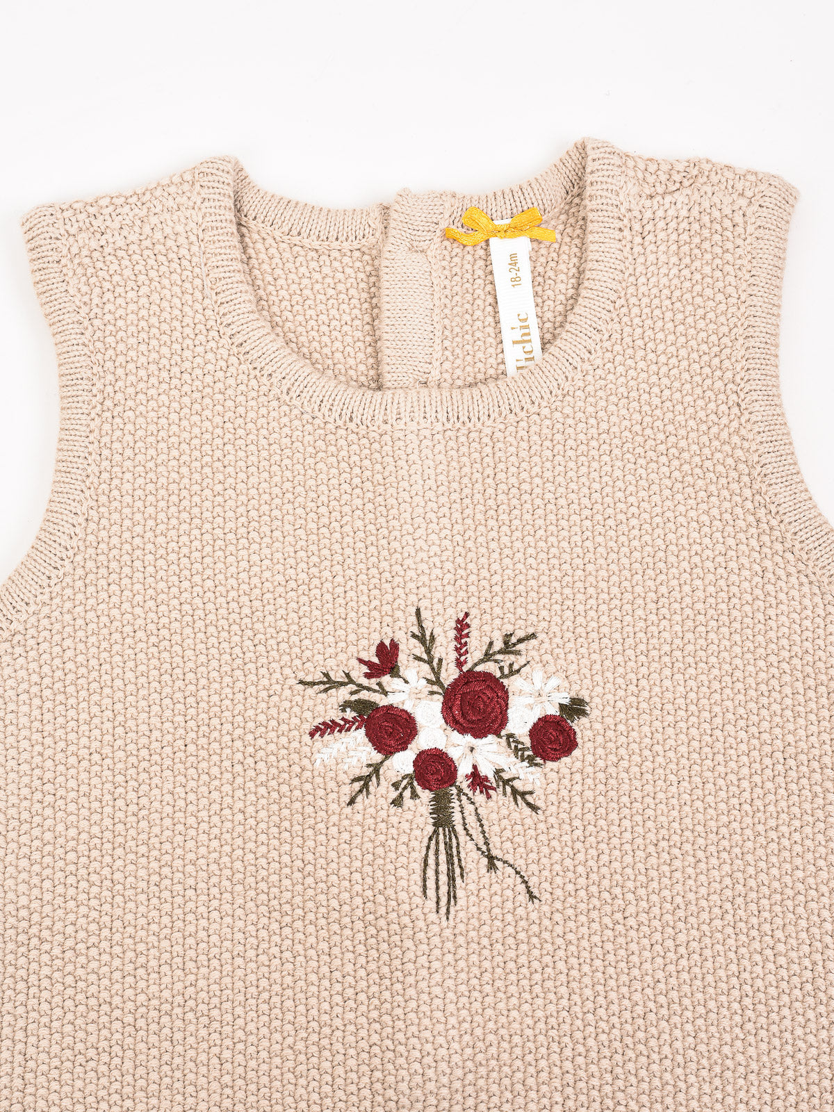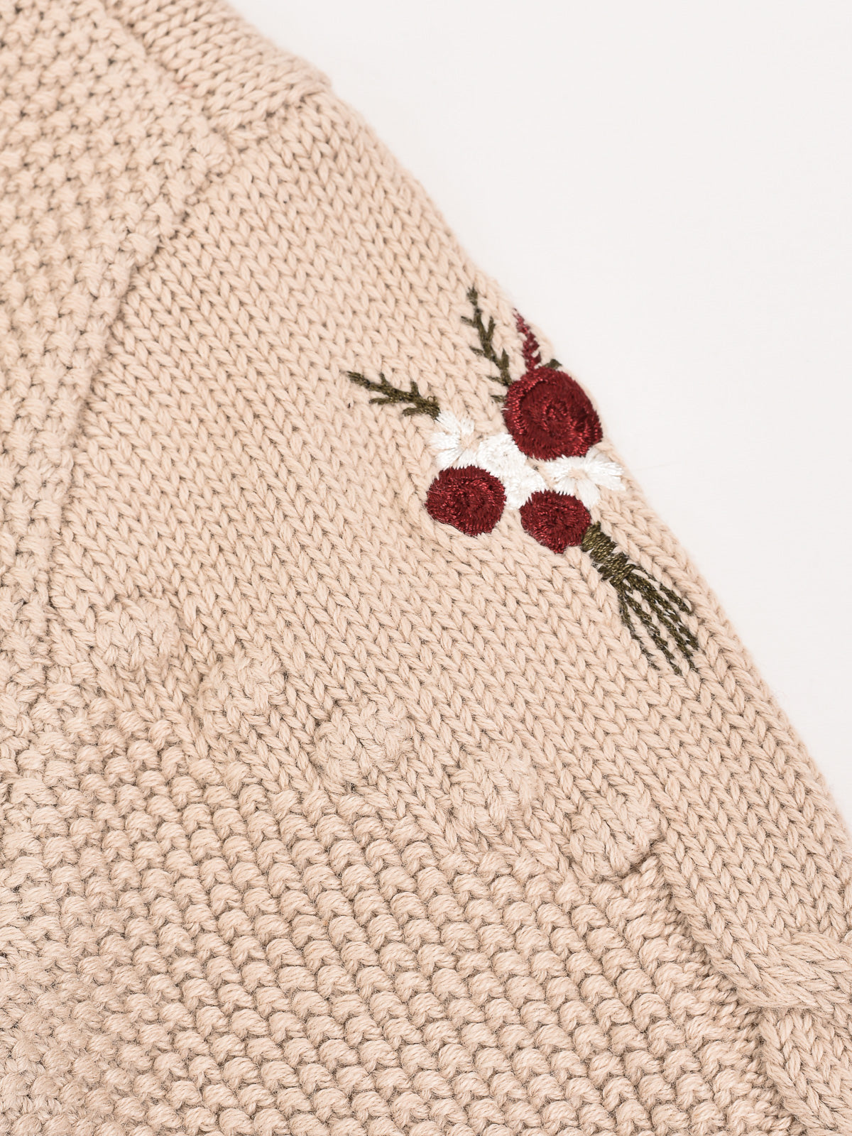 סט בייבי סריג פרחים - בז'