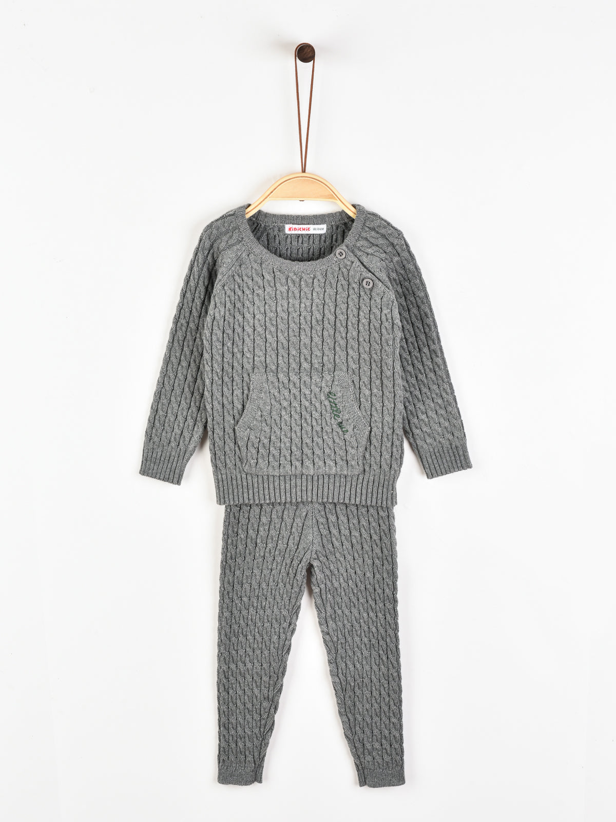 סט סרוג לתינוק עם כיס קנגורו - אפור
