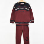סט חליפת סריג - בורדו