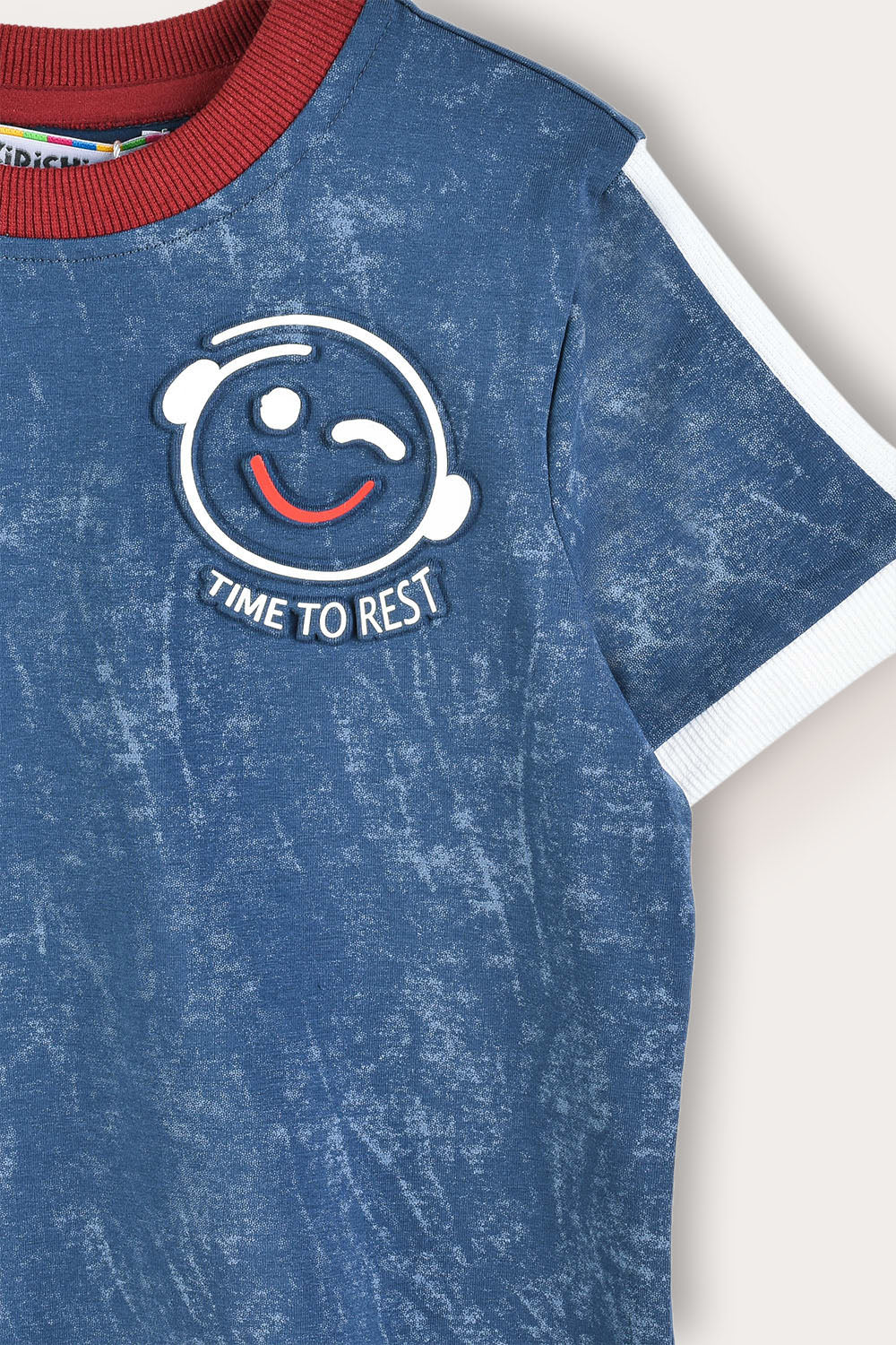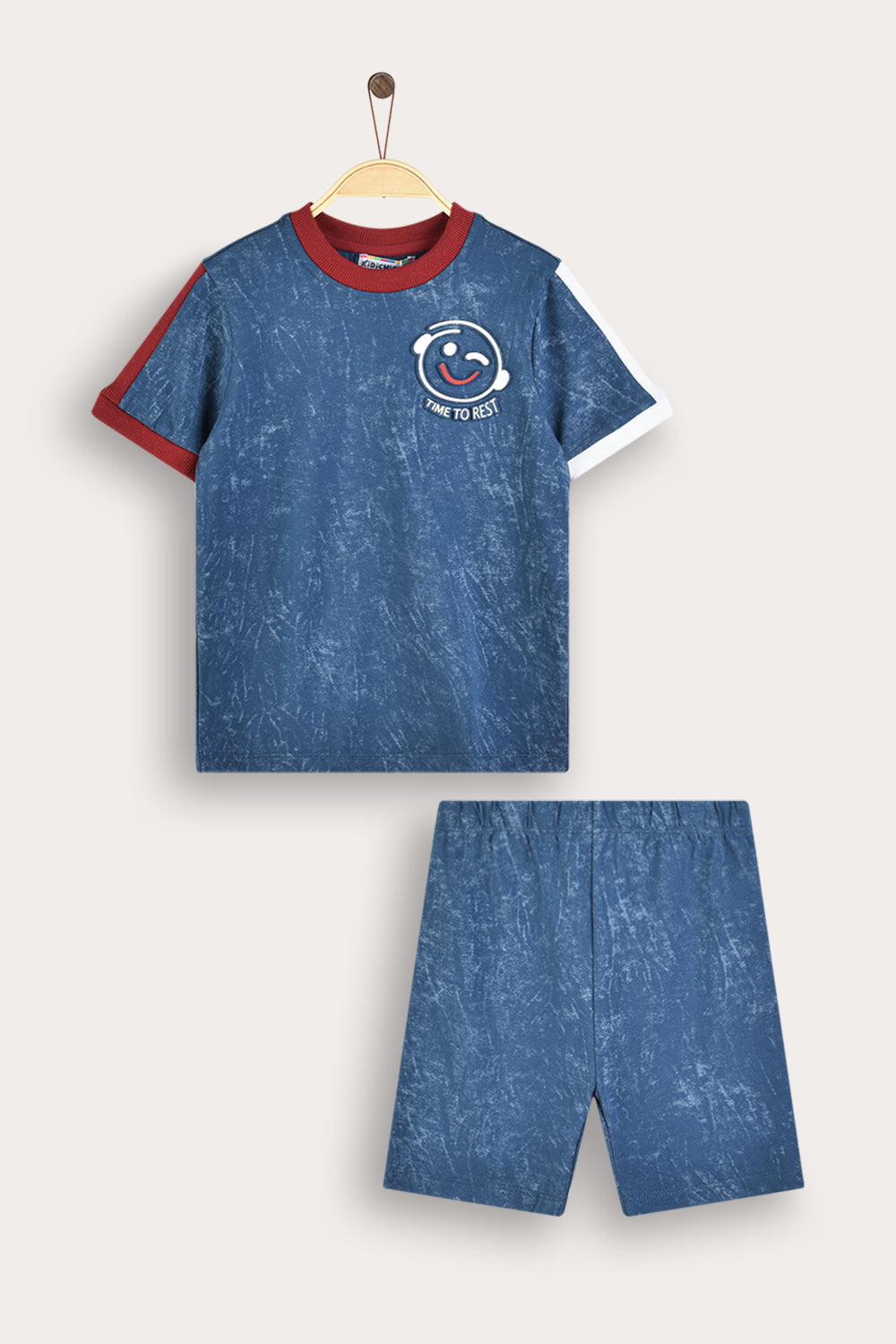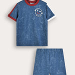 סט פיג'מה איכותי לבנים, הכולל שני חלקים בעיצוב צעיר ועדכני, בשילוב סמל מתוק בצד. חולצת שרוולים קצרים ומכנסיים קצרים תואמים עם סיומת ריב - לנוחות והתאמה מושלמת. עשוי בד תערובת כותנה רך ונושם בצביעה ייחודית עם אפקט וואש - המתאים לשימוש יומיומי.