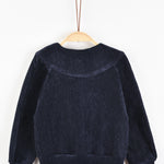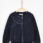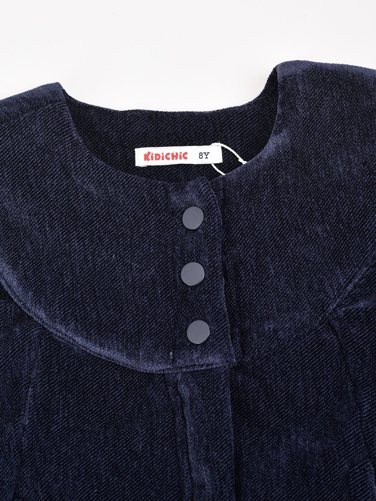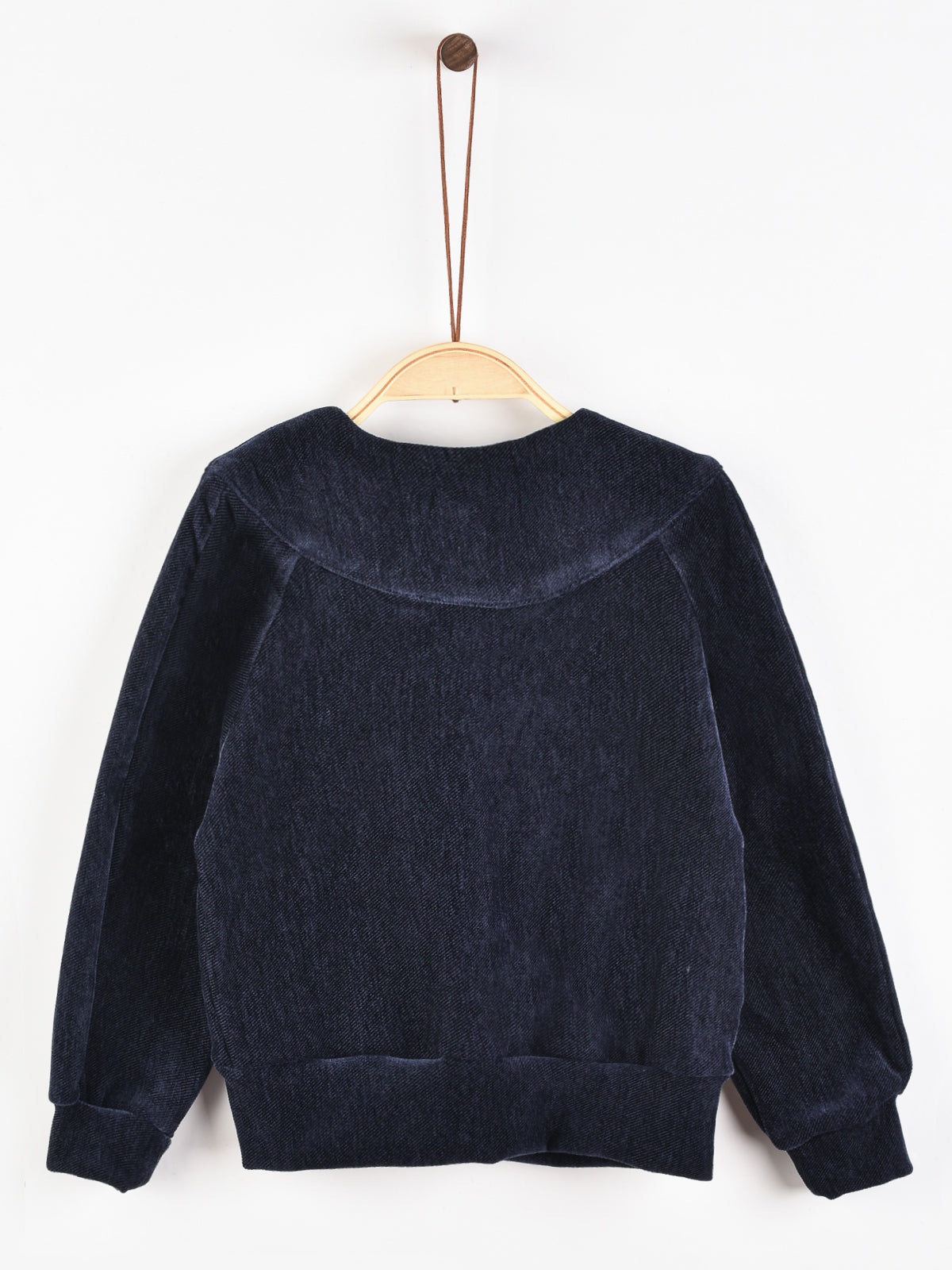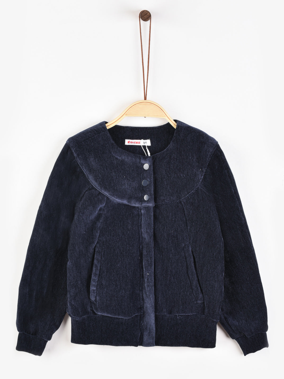 קרדיגן מבד קטיפה, עם שני כיסים וסגירה של שלושה תיקתקים.