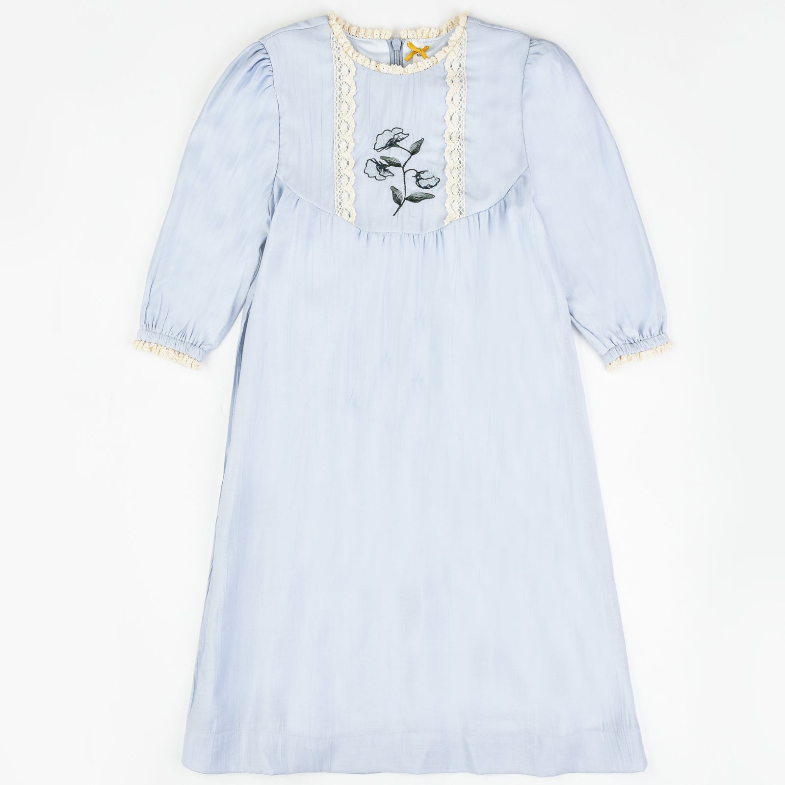 שמלה עם רקמת פרחים - תכלת