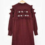 שמלת סריג עם פרחים - בורדו