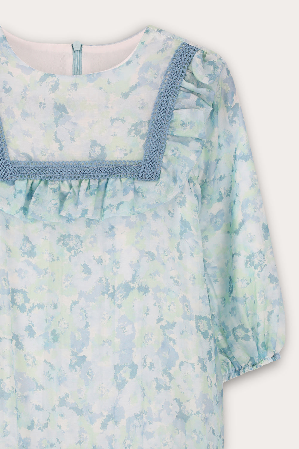 שמלה חגיגית לבנות, בעיצוב פרחוני אביבי ועדין. הגזרה כוללת שרוולים ארוכים, קומות בשילוב עם מלמלה ורוכסן בגב הבגד, ללבישה קלה. מתאימה לשבתות, חגים ואירועים משפחתיים.הרכב בד:75% טנסל25% ניילון
