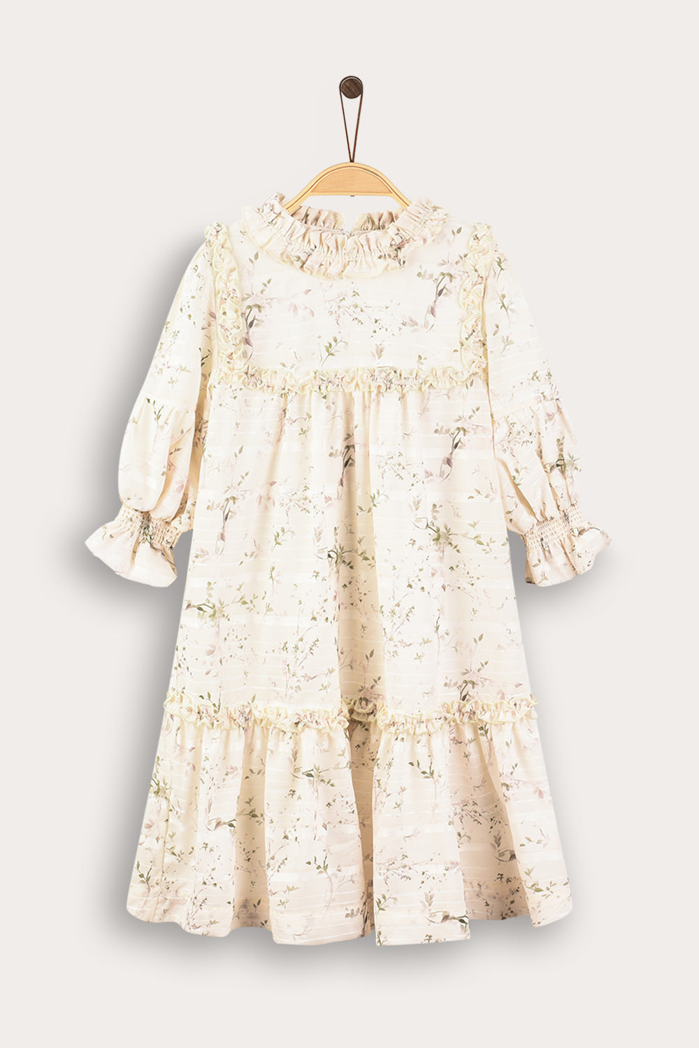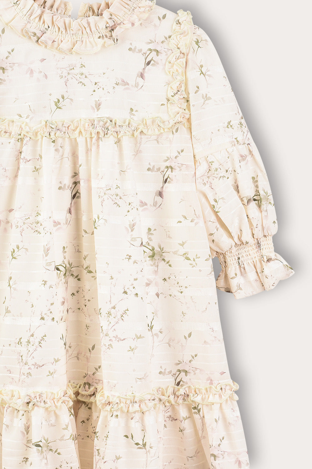 שמלה חגיגית לבנות, עשויה מבד אריג פרחוני. גזרת קומות מחמיאה, גימורי מלמלה, שרוולים נפוחים ורוכסן בגב הבגד ללבישה קלה ונוחה. בחירה מושלמת להופעה מרשימה ומסודרת בשבתות ובחגים.